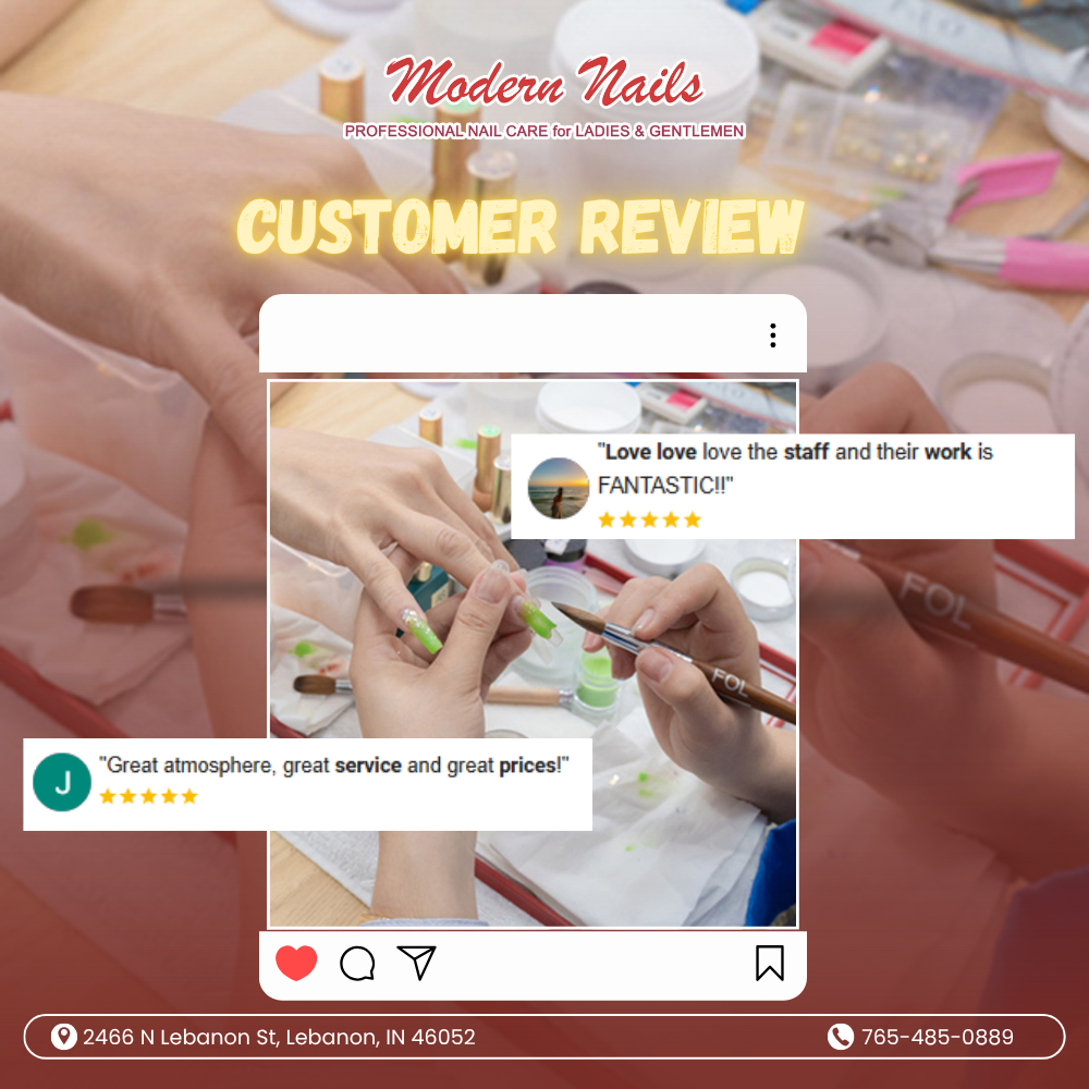 Located conveniently in Lebanon, IN 46052, Modern Nails is pleased to provide a clean and welcome atmosphere, which will make you freely enjoy the relax moments and escape from all of life’s pressure to make the most wonderful time.